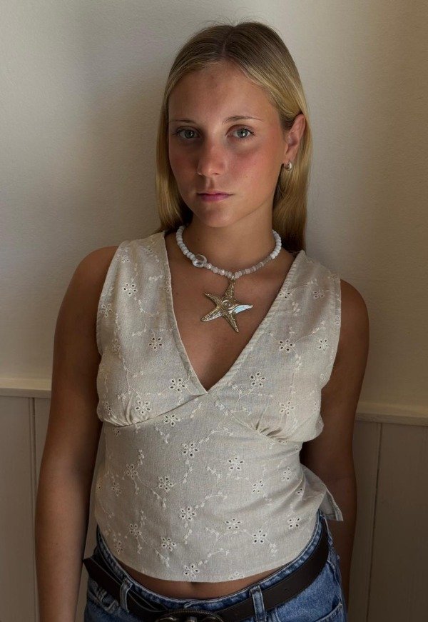 El gran protagonista es nuestro dije XL de estrella de mar, una pieza imponente que captura la esencia del verano.